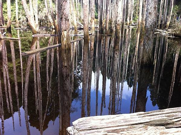 在那兒有迷霧籠罩著森林 清澈的湖水倒影